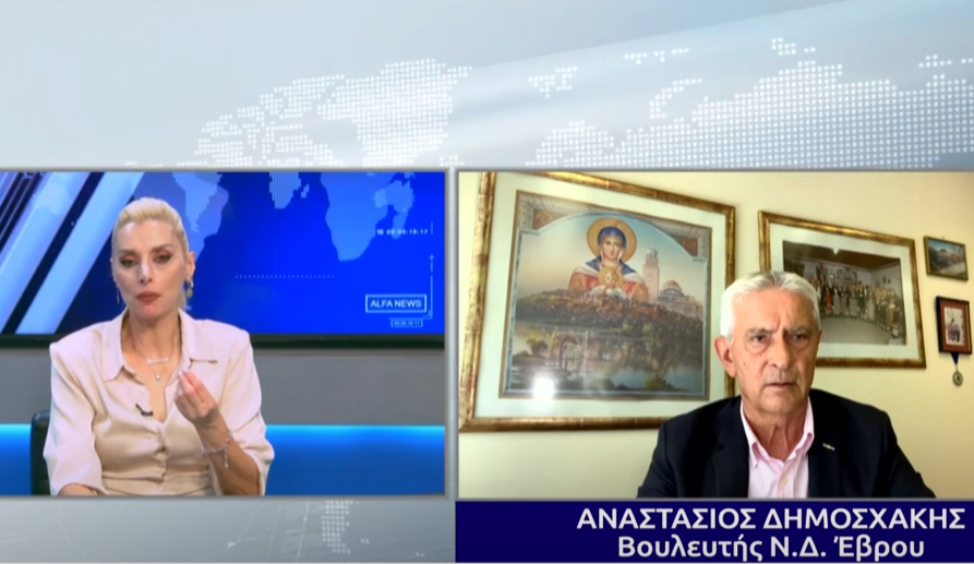 Ο βουλευτής της Ν.Δ. στον Έβρο Αναστάσιος Δημοσχάκης μιλά στο ALFA TV για όλα τα επίμαχα και επίκαιρα προβλήματα που απασχολούν το νομό αυτό το διάστημα με επίκεντρο το εξαιρετικά σοβαρό ζήτημα με τα νερά του Άρδα.