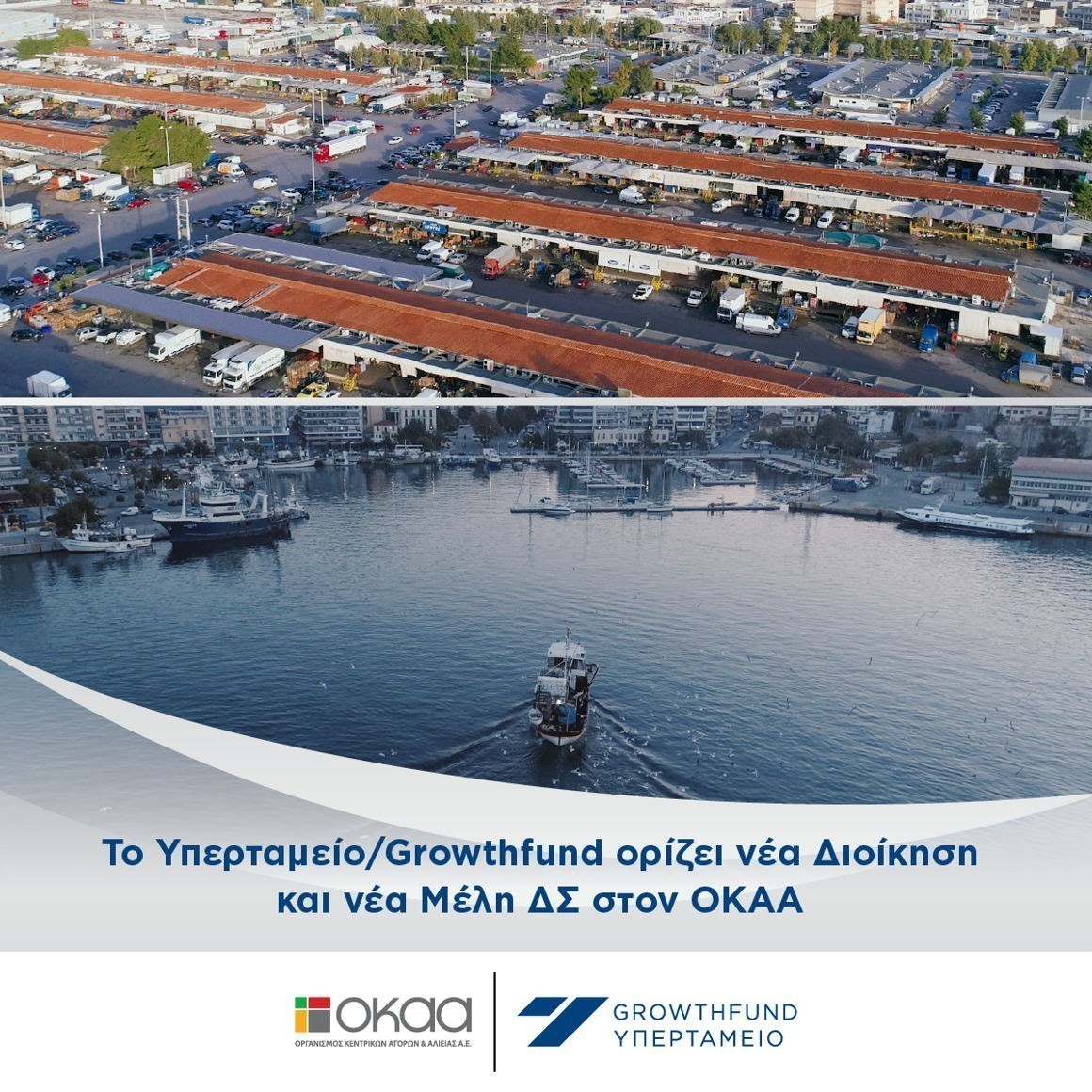 Το Διοικητικό Συμβούλιο του Υπερταμείου/Growthfund ορίζει ως νέο Πρόεδρο του Διοικητικού Συμβουλίου του Οργανισμού Κεντρικών Αγορών & Αλιείας (ΟΚΑΑ) τον κ. Στέφανο Βαφείδη, ως νέο Διευθύνοντα Σύμβουλο τον κ. Νικόλαο Λυμπέρη, καθώς και τα νέα μέλη Δ.Σ. τους κ. Γιώργο Φατούρο και κ. Άρη Δημητριάδη.