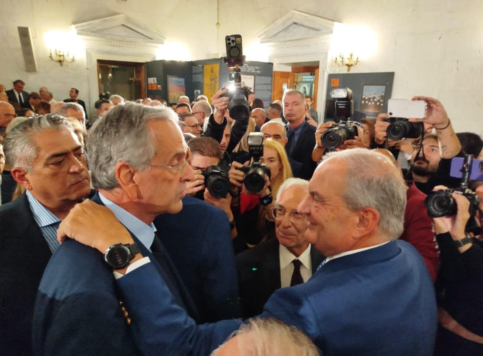 Ο πρώην πρωθυπουργός παρευρέθηκε στην ομιλία του Κώστα Καραμανλή ενώ είχε μαζί του και μία θερμή χειραψία.